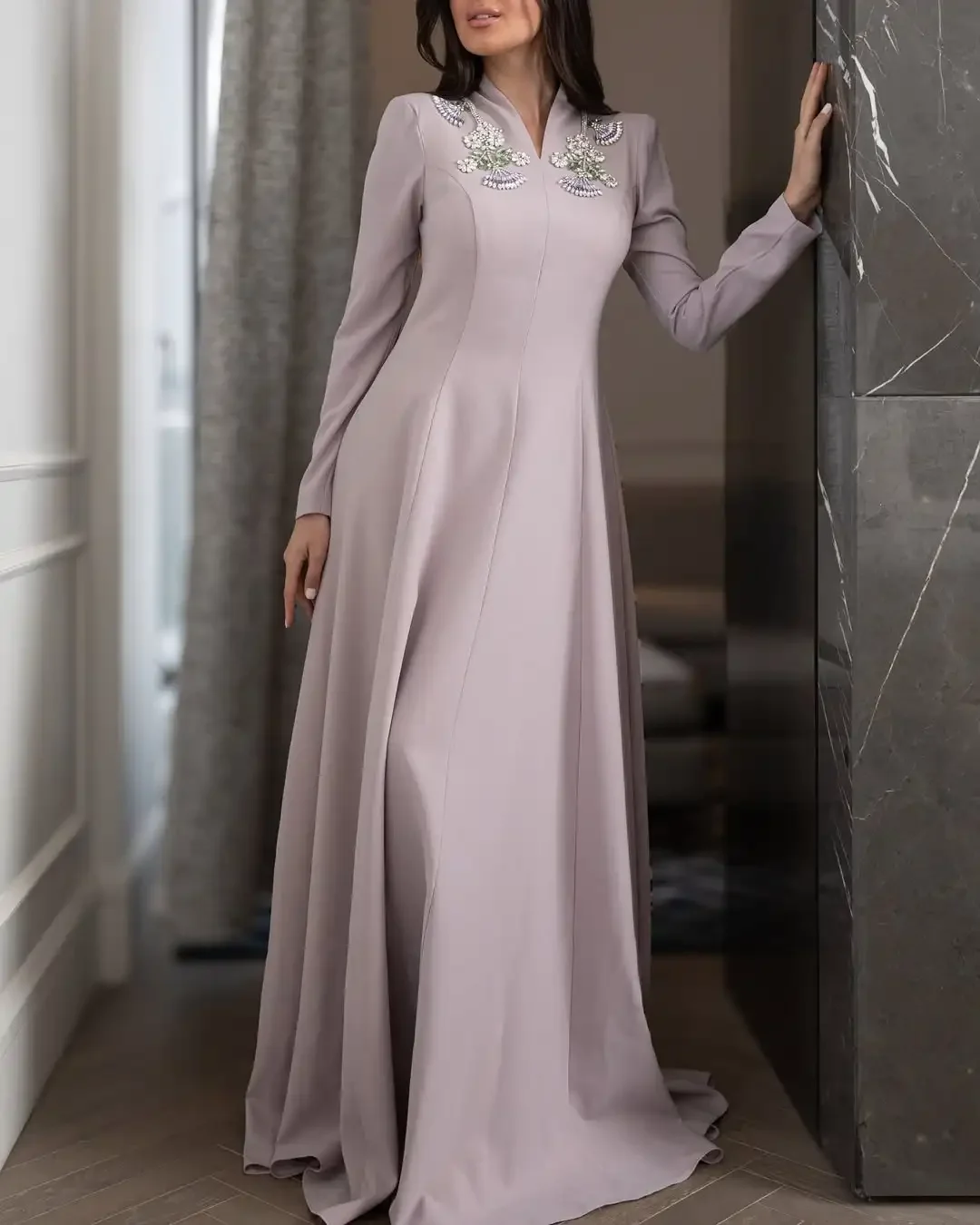 Be the first to review “customized Long Sleeevs Prom Dresses V Neck Pleated Beadings Floor Length Vestidos De Fiesta Celebrity Evening Dresses”