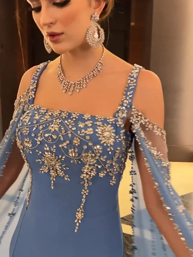 customized Mermaid Evening Dresses Luxurious Crystal Prom Gowns Women’s Spaghetti Strap Formal Occasion Party Dress