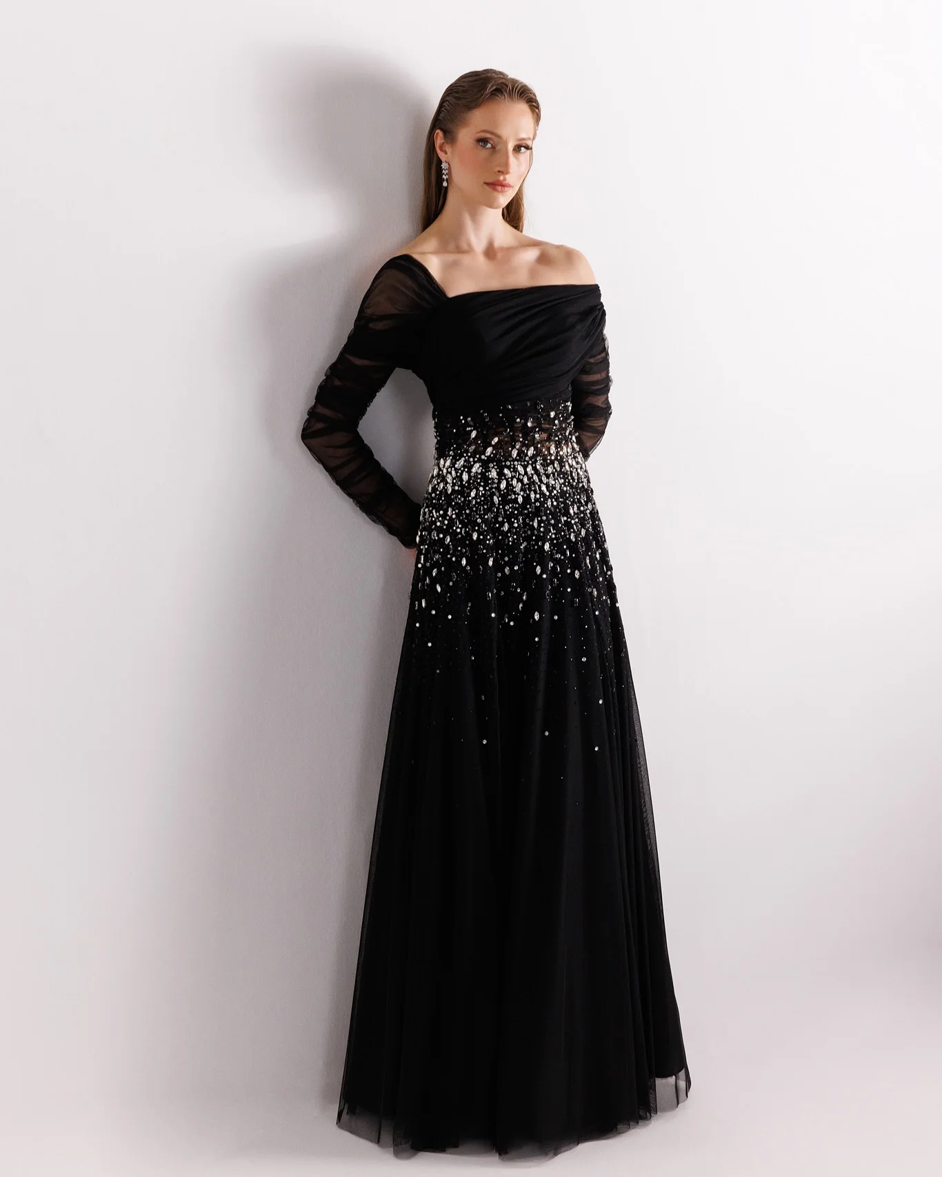 customized Prom Dresses Celebrity Evening Dress Mother Gowns Long Sleeves Beads Crap Pleated Floor Length Wedding Party Dresses