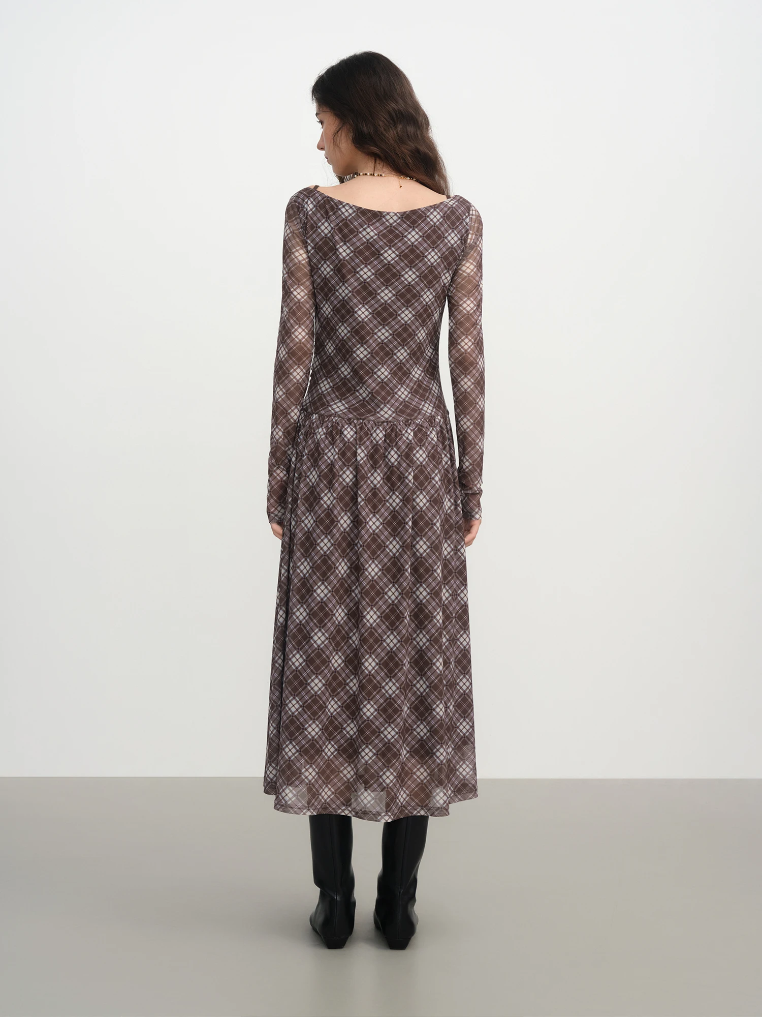 FSLE Elegant Women’s Vintage Plaid Pleated Faux Two Piece Slimming Fitted Dress for Winter 2025 New High Waist Travel Dresses