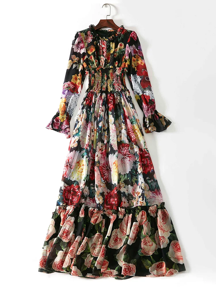 Be the first to review “Ladies Elegant Floral Print Long Sleeve Dress Summer Beach Chiffon Ruffled Collar Dress Elegant Elasticity Waist A-Line Sundress”